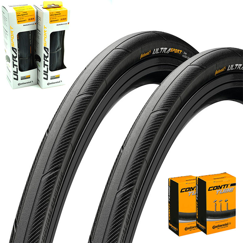 2x CONTINENTAL Rennrad Reifen 700x28C | 28-622 Ultra Sport III faltbar Perf. schwarz mit SV Schlauch 42mm